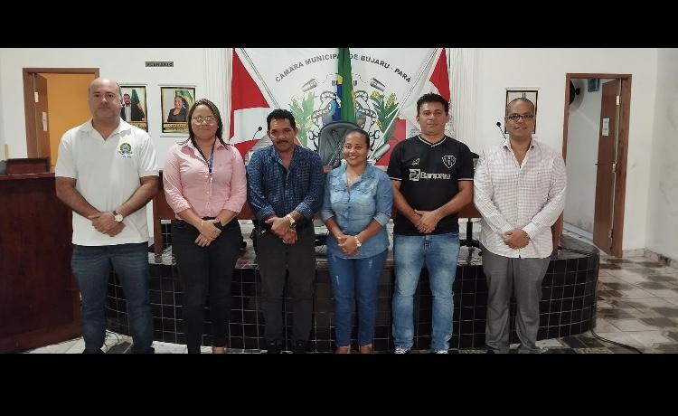 Na manhã desta terça feira (12), a Presidente da Câmara Municipal Vereadora Jonaia Curcino, o Secretário de Administração Dimmi Ferreira, e os representantes do Tribunal regional eleitoral (TRE) Leonardo de Lima Rêgo e Pricila Campos Fonseca, estiveram reunidos na Câmara de vereadores, para deliberação de realização de Ação itinerante do TRE no Município de Bujaru, onde serão disponibilizados diversos serviços eleitorais. Também estiveram presente na reunião os vereadores Valmir Araújo, Alfredo Bentes e Jefferson Souza. Assim que for definido data da ação informaremos a população